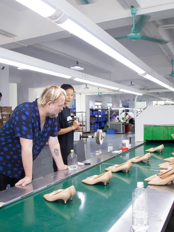 I have big issues with a lot of shoe brands who say they are sustainable, as I don't always find that true, plausible or honest. My approach is more about transparency and focuses on WHO is making my product and WHERE. Of course I use recycled materials for my packaging, have removed all plastics from the dust bags etc. I consider that the minimum we can do in 2025. Everyone should do this, I don't deserve accolades for that! I have also launched initiatives to re-use left over materials to make my small leather goods project: STOREHOUSE, using the pieces for wallets, key fobs etc. My shoes are not 100% sustainable of course, but I am taking the continual steps to best practices so I can feel good about what I put into the world, as well as what I ask of it. We have been able to use chrome free leathers — again that is essential — but also recycled PU's, and recycled linings… etc. New material innovations are exciting. Shoes have a long way to go!