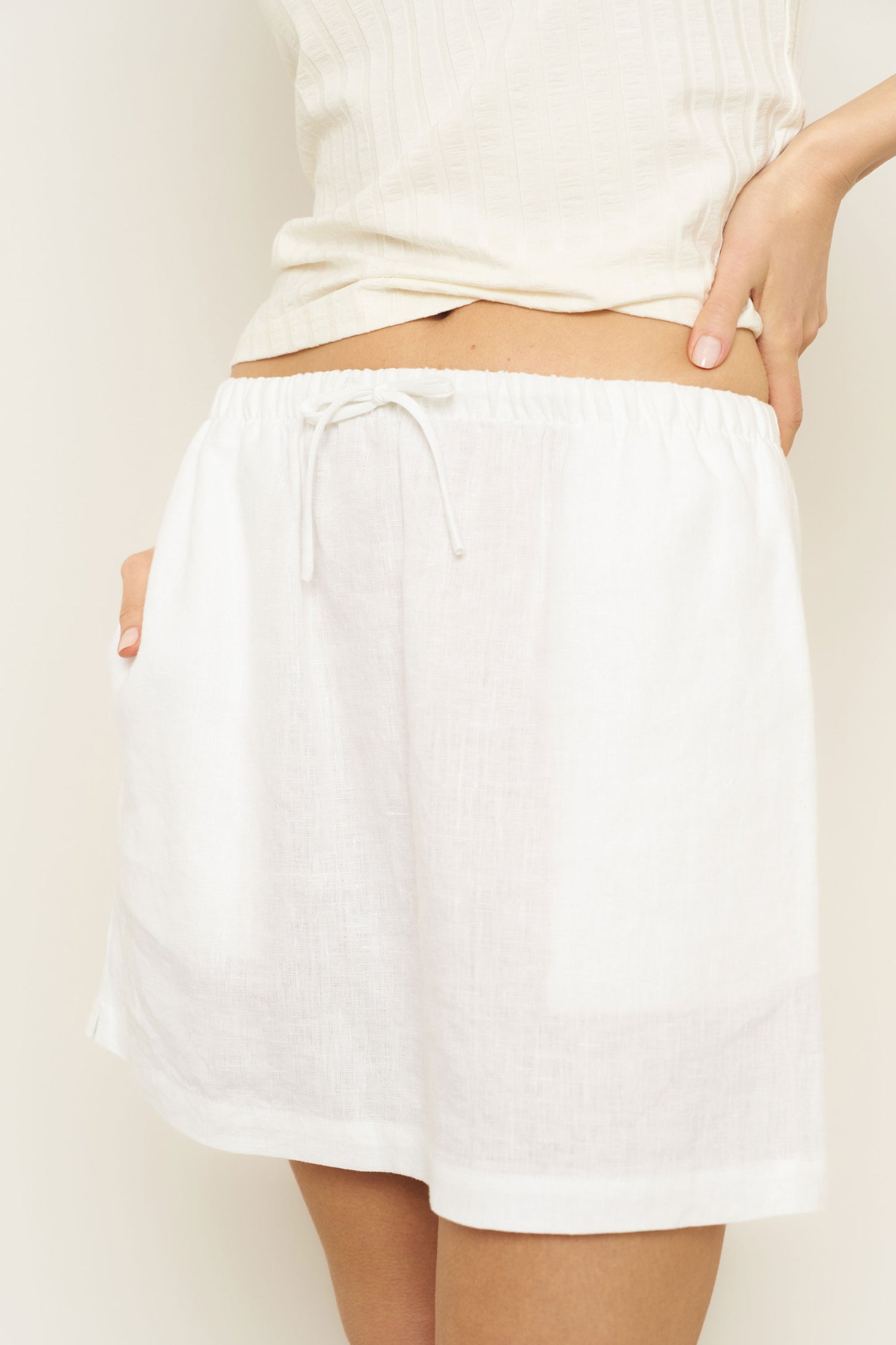 Enjoy the summer with the effortlessly stylish Bella Skirt. Featuring a short length for a cool and breezy feel, a drawstring for a flattering fit, and pockets for convenience. Complete your summer look with this must-have skirt.
